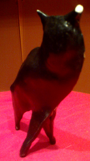 Następna porażka to kotek. jest lepszy niż wynika ze zdjęcia, śliczny jest, no! Ale odłamało mu się uszko. Odłamało nie wiem kiedy, szukałam w odmętach pieca kawałka uszka i nie ma. Zniknęło. Zadziwiające.